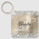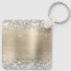 Elégante parties scintillant en argent avec éclat contre une fausse image graphique en feuille de métal brossé or de champagne pâle. On peut customiser le monogramme de calligraphie fantaisie noir et blanc au centre. Tous les éléments brillants et brillants de ce design girly moderne sont des graphismes numériques. Une précieuse fête de porte - clé monogrammée favorise sa fête d'anniversaire spéciale.