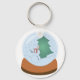 Art vectoriel d'un globe de neige avec bonhomme de neige, neige et pinète à l'intérieur du globe.
