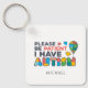 Cool, lumineux, audacieux et dynamique "S'il vous plaît être patient j'ai l'autisme" Conception porte - clé avec espace réservé pour l'adresse de retour et le numéro de téléphone sur le côté opposé