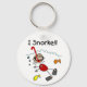 Un petit bâton figuré fille snorkels sous l'eau tandis que les poissons nagent à proximité et le texte de style enfant dit "I Snorkel" sur mignon bâton figuratif fille T-shirts, tasses, mousepads, sacs fourre-tout, et autres articles de thème d'été!