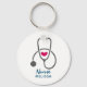 Un porte - clé personnalisé avec "Nurse" écrit dans une police de caractères cool. Un petit coeur rose et une simple illustration de stéthoscope gris.