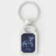 Porte - clé avec le symbole zodiaque pour Aries en bleu argenté doux, recouvert d'étoiles de la constellation, contre un arrière - plan ciel étoilé classé de bleu nuit profond à noir.
