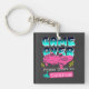 The design features the iconic GAME OVER message and Press Start to Continue prompt in chunky, pixelated typography. A prominent pink, textured console controller sits at the center, surrounded by neon cyan, white, and yellow lightning bolts and glitch effects. The color palette and blocky font evoke heavy 90s console and arcade nostalgia. This piece is perfect for old-school gamers, retro enthusiasts, arcade visitors, or anyone who remembers the thrill of putting in another coin to continue the adventure.
