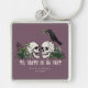 Ce goth romantique "Til Death Do Us Part", porte - clés mariages irlandais de la St. Patrick's Day, présente des illustrations à thème irlandais et gothique à l'encre noire, mettant en vedette des crânes de mari et de femme et un corbeau noir orné de roses verts, de feuilles, de baies, de fleurs sauvages et de trèfles verts. Élégant arrière - plan prune violet. Tout le texte est modifiable.
