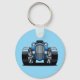 Hyper-stylized front-view toon hotrod with massive wheels, electric-blue shine, bold grille and powerful low-angle stance for a dynamic monster cartoon car look.