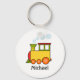 Train multicolore mignon en jaune, rouge, vert et orange. Des bouffées de vapeur bleue moelleuse sortent de la cheminée. Ci-dessous est un modèle pour ajouter votre nom pour personnaliser ce porte - clé.