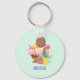 Un porte - clé personnalisé illustré par le dessin d'une crème glacée à 3 boules sundae avec des arrosages colorés. Un cône glacé avec des boules de chocolat, fraise et vanille. Un bol de glace néopolite avec une cerise sur le dessus. Des fraises et un ananas sont assis à côté des bols. L'été et doux.