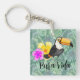 Tropical Toucan Costa Rica Pura Vida Design Porte - clé avec couleur arrière - plan personnalisable et texte à modifier ou supprimer. "Pura Vida" (prononcer poo-rah vee-duh) représente l'attitude détendue des Costaricains envers la vie, quelles que soient les circonstances. Il se traduit par "vie pure" ou "vie simple" et il est utilisé pour dire bonjour, au revoir, dire que tout va bien, et pour éliminer toute négativité. C'est une philosophie, un mode de vie et une attitude.