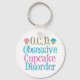 Des cupcakes bleu et rose pâle et doux et joliment gelés décorent ce drôle de cadeau pour quelqu'un qui a une dent sucrée. Un cadeau porte - clé pour une boulangerie. Un petit humour boulanger.