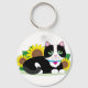 chat tuxedo noir et blanc allongé dans un lit de tournesols