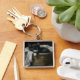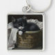Quelle façon amusante d'habiller vos clés avec ce précieux porte - clé chaton ! Ce tableau se concentre sur un adorable chaton noir et blanc niché au sommet d'une couverture blanche dans une corbeille cachée dans un coin cosy. Les yeux du chaton sont brillants et curieux, et il semble tendre vers la frange sur le bord de la couverture. Les petites cordes blanches de la frange sont si tentantes ! L'environnement est faiblement éclairé, créant un sentiment de chaleur et d'intimité. Le tableau dégage un sentiment de confort et de tranquillité, comme si le spectateur était tombé sur un moment de sérénité dans la vie de ce petit félin ludique. Les détails de la peinture sont réunis pour créer une scène charmante et attachante qui ravira tout amoureux des chats.