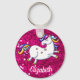 Un magnifique petit licorne blanc, avec crinière arc-en-ciel, queue, corne et sabots dorés, sur un lit de parties scintillant rose. Ce porte - clé de licorne plus mignon peut être facilement personnalisé avec votre propre nom dans les options de personnaliser. Ce keyring de licorne ferait un grand cadeau pour un amoureux de la licorne, ou serait parfait pour les faveurs de la fête de la licorne.