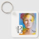 This unique keychain features a reproduction of one of my original artworks: a shimmering face, hand-painted in acrylic and enhanced with gold and silver leaf.