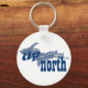 Un design graphique de style grunge d'une carte de la péninsule du Michigan avec le texte "Up North" de l'artiste-designer Charmaine Paulson sur un porte - clé.