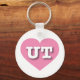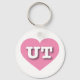 Ce porte - clé présente un coeur rose cool et calme contenant les lettres coques, blanches et audacieuses UT, l'abréviation officielle de Utah, l'état de ruche.
