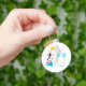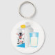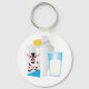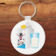 Un verre de lait à côté d'une boîte de lait avec une image de vache dessus. Cette conception semble vraiment efficace sur ce Porte - clé