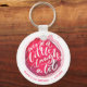 Porte - clé ronde propose un texte amusant "Wine a Little Laugh A Lot" sur une tache de vin rouge - personnalisé avec vos informations de fête. Les porte - clés font des cadeaux mémorables pour leur famille et leurs amis ou créent pour vous-même.