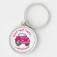 Voiture de dessin animé en jouet rose. Deux champs de texte personnalisés sur cercle.