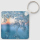 Vue tôt le matin d'une fenêtre couverte de gel.