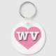 Ce porte - clé présente un coeur rose cool contenant les lettres coques en gras, blanches et supérieures WV, l'abréviation officielle de West Virginia, l'état de la montagne.