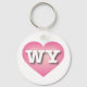Ce porte - clé est doté d'un coeur rose cool avec un centre blanchi contenant les lettres blanches en haut-coque WY, l'abréviation officielle du Wyoming, l'état cowboy.