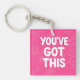 Playful motivational text chunky rounded typography in white on pink textured background.