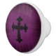 Porte de style ou bouton gothique de tiroir avec un regard pourpre de velours et une croix gothique noire.