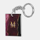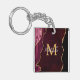 Ce porte - clé est décoré d'un élégant arrière - plan en marbre d'agate glamour avec des détails de gemme de géode et des accents de parties scintillant d'or faux. Le monogramme combine écriture manuscrite et polices sans serif modernes pour un look élégant et sophistiqué. Cela fera le cadeau idéal car il peut être customisé avec un nom et une initiale. Les teintes rouges profondes le rendent parfait pour l'automne et l'hiver.
