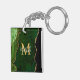 Ce porte - clé est décoré d'un élégant arrière - plan en marbre d'agate glamour avec des détails de gemme de géode et des accents de parties scintillant d'or faux. Le monogramme combine écriture manuscrite et polices sans serif modernes pour un look élégant et sophistiqué. Cela fera le cadeau idéal car il peut être customisé avec un nom et une initiale. Les teintes vertes et profondes le rendent parfait pour l'automne et l'hiver.