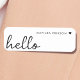 Un design d'étiquette de nom minimal avec un script manuscrit stylisé de grande typographie "bonjour" jumelé avec votre propre nom et un simple coeur noir. Conçu dans un style mininaliste moderne, en noir et blanc simple et propre. Le cadeau ou accessoire personnalisé parfait pour n'importe quelle période de l'année!