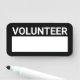 Black Blank Volunteer Name Tag avec le titre "Volontaire" en blanc gras sans serif police avec espace blanc vierge pour votre nom sur arrière - plan noir.