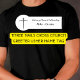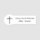 Un design minimaliste moderne simple avec trois clous formant une Croix chrétienne en noir avec le nom de l'Eglise et le nom du Greeter. Noir et blanc.