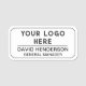 Créez des étiquettes de nom d'employé en plastique avec logo de marque, et choisissez une épingle de sécurité OU une étiquette de nom magnétique. Utilisez l'outil de conception simple pour remplacer cet espace réservé au logo par votre propre logo, et ajoutez votre nom et votre titre de travail. Customisez plus loin avec l'outil de conception simple. Modifier les styles de police ou la couleur des polices. Cette version comporte une bordure noire avec des coins arrondis.