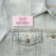 Nom tag avec un arc brillant avec contour or et une pierre rose facettée au centre. Style luxe féminin glam style.