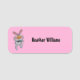 Ce tag est rose vif avec un lapin lapin blanc avec un nez orange portant une cravate arc-en-ciel noire donnant un signe pouce vers le haut. Customisez votre nom avec le modèle.