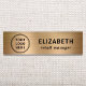 Élégante étiquette de nom avec le logo de votre entreprise ou de votre organisation contre un arrière - plan métallique contrebrossé or. Ajoutez un nom et un titre dans la typographie moderne simple.