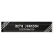 Elégante plaque de nom de bureau noir avec trois lignes en diagonale blanche.