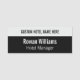 Nom de l'employé de l'hôtel moderne avec le nom de l'entreprise, le nom de l'employé et le titre de l'emploi professionnel. Cette conception peut être personnalisée avec n'importe quelle couleur et police en cliquant sur le bouton pour modifier la conception. Choisissez entre un support magnétique ou épingle à linge.