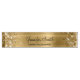 Parties scintillant d'or brillant sur les bords latéraux, sur un faux métal brossé jaune doré ou en acier inoxydable à l'ombre. Les couleurs principales sont le beige, le jaune, l'or, le noir et le blanc. Plaque de bureau personnalisée avec place pour le nom et le titre de l'emploi. Le style et la taille de la police peuvent être modifiés si nécessaire.