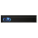 Luminous infinity symbol with glowing, beautiful, lushly blooming rose made of blue flames on black background.