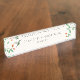Unique name plate featuring a hand-painted female Ruby-throated Hummingbird and flowery branches on a cream-white background.