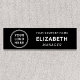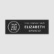 Marque de nom noir moderne avec le logo de votre entreprise ou de votre organisation. Ajoutez le nom de votre entreprise et le nom et le titre de l'employé dans une simple typographie blanche.