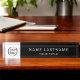Une plaque de nom professionnelle élégante pour votre bureau prêt à personnaliser avec votre logo, nom et titre de l'employé ou autre texte. Montré ici avec un arrière - plan moderne sophistiqué en noir et blanc, vous pouvez changer la couleur en sélectionnant "modifier à l'aide de l'outil de conception" qui ouvre l'éditeur complet pour changer les couleurs arrière - plans et déplacer le texte.