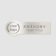 Un nom professionnel élégant à personnaliser avec votre logo, nom et titre de l'employé ou autre texte. Marquez facilement votre entreprise, club, passe-temps ou autre avec des produits de qualité. Montré ici avec un arrière - plan métallique perle neutre sophistiqué, vous pouvez changer la couleur en sélectionnant "modifier à l'aide de l'outil de conception" qui ouvre l'éditeur complet pour modifier les couleurs arrière - plans et déplacer le texte.