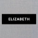 Employé moderne ou bénévole noir étiquette de nom avec votre nom dans la simple typographie blanche.
