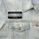 Balise de nom noir avec un dégradé gris argenté (image imprimée) au milieu et votre nom personnalisé, nom de l'entreprise et titre. Vous pouvez modifier les polices et les couleurs de police avec l'outil de personnalisation.