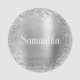 Bordure de parties scintillant circulaire en argent Faux et art numérique de papier gris argenté métallique (imprimés comme une photo sur ces étiquettes rondes classiques). Il y a beaucoup de place pour un titre professionnel ou même un logo d'entreprise. Customisez la taille de police du script moderne de calligraphie blanche. Ajoutez une lettre initiale unique pour créer votre propre monogramme personnalisé pour elle.