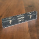 Cowboy occidental crâne de vache taureau beige gris pays grunge texture customisée horizontale plaque de nom du bureau. Cool, grange, style vintage, vieux style rustique de l'Ouest sauvage d'inspiration antique design. Fournitures de bureau branchées pour animaux de ferme. Copyright de l'image Marg Seregelyi Photography.