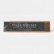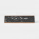 Une plaque signalétique minimale de bureau comportant un marbre noir a dénommé le contexte. Sur l'avant est votre nom et information dans une police moderne unique.