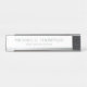 Élégante plaque de bureau professionnelle blanche et argent avec nom et profession en argent classique serif style de police, avec bordure en argent, sur arrière - plan blanc. Parfait pour un agent immobilier, un designer, un avocat, un consultant et de nombreuses autres professions. Remarque : Les détails du papier sont simulés dans l'illustration. Il n'y aura pas de métal sur ce produit.